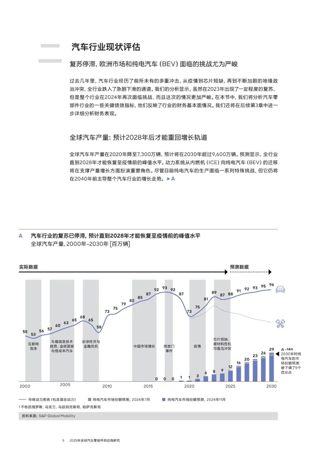 元股证券:yy6699.vip当前,全球汽车零部件行业正面临严峻的市场格局。增长停滞,竞争加剧,地缘政治高度不确定性,技术转型所需时间不断拉长进而导致成本压力陡增。基于对汽车零部件行业的长期观察,我们认为该行业现状可以被称为“Stagformation(停滞转型期)”,其有两大显著特征:销量增长停滞及现有商业模式亟待转型。
